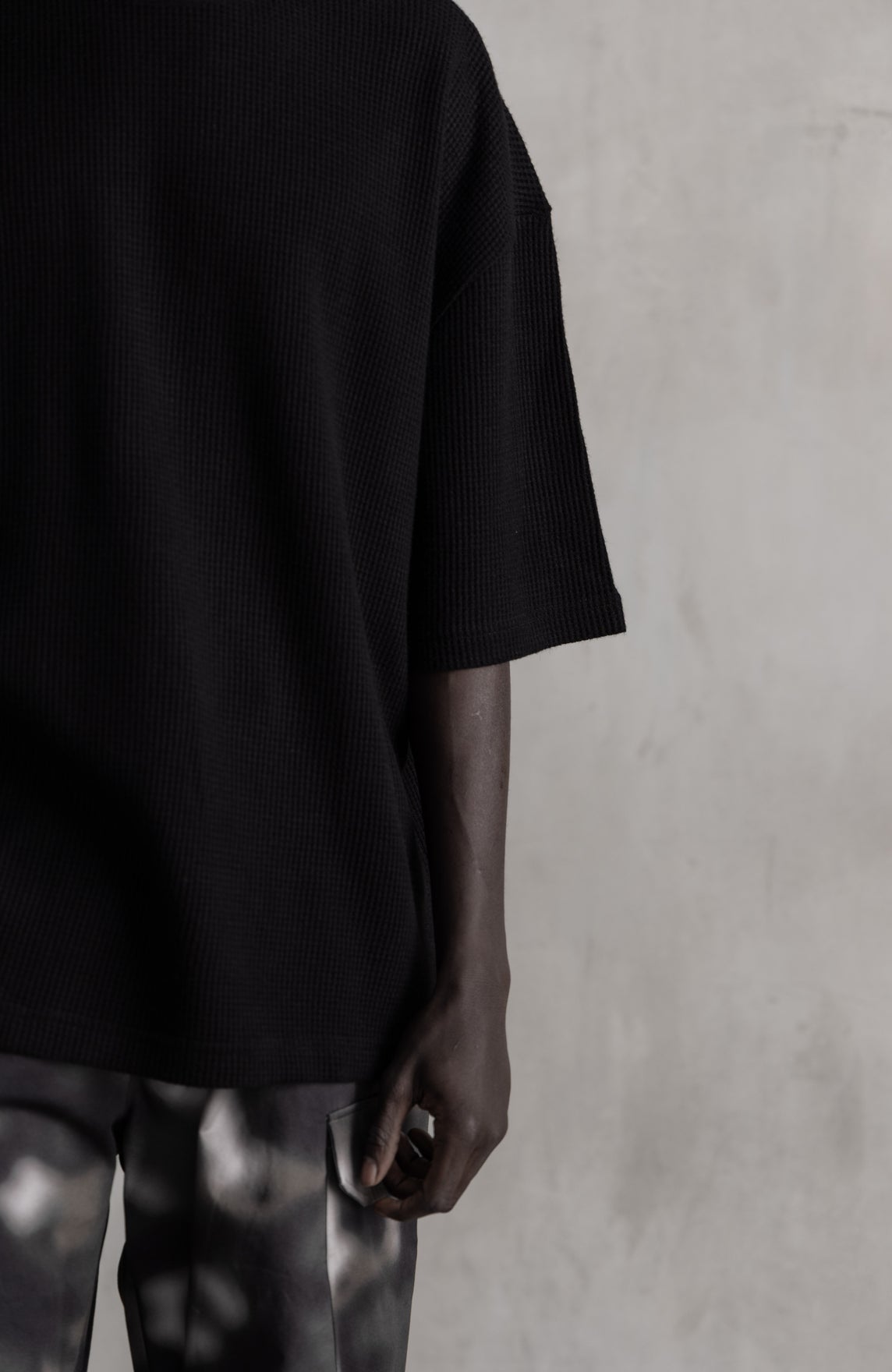 滑らかな肌触りのレーヨン混ワッフルサーマル素材を使用した、ハーフスリーブトップ。